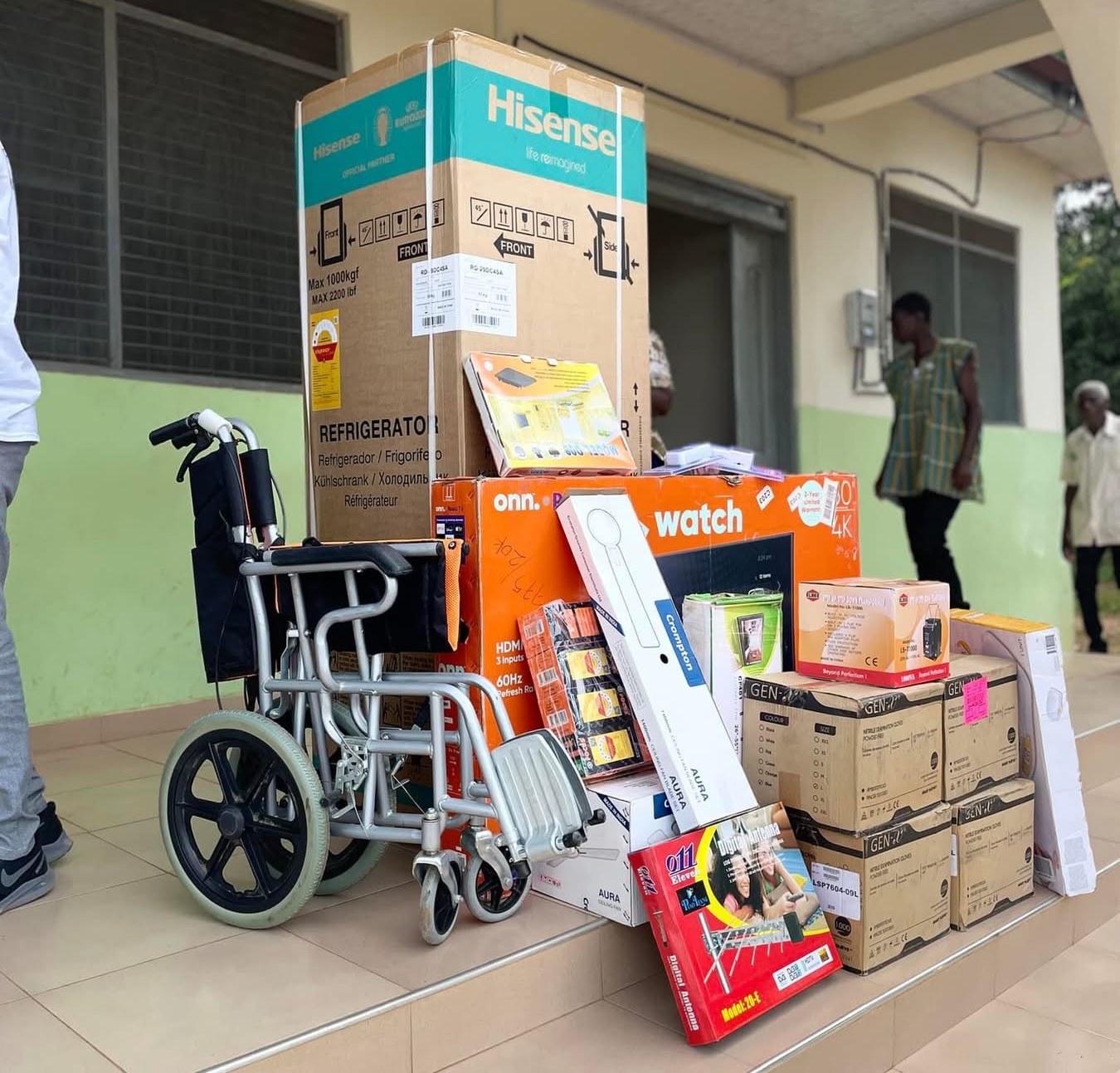 Excelsior Farm Limited located in the Akuapem South District presented medical equipments to Yaw Duodo CHPS compound. The farm leaders spearheaded this excellent charity initiative. The donated items include; 50" 4K television, refrigerator, wheelchair, ceiling fans, boxes of surgical gloves, syringes, satellite tv decoder, power regulator. The farm managers took upon themselves to solve the water problem at the facility by providing a brand new surface pump to facilitate the supply of water throughout the facility.